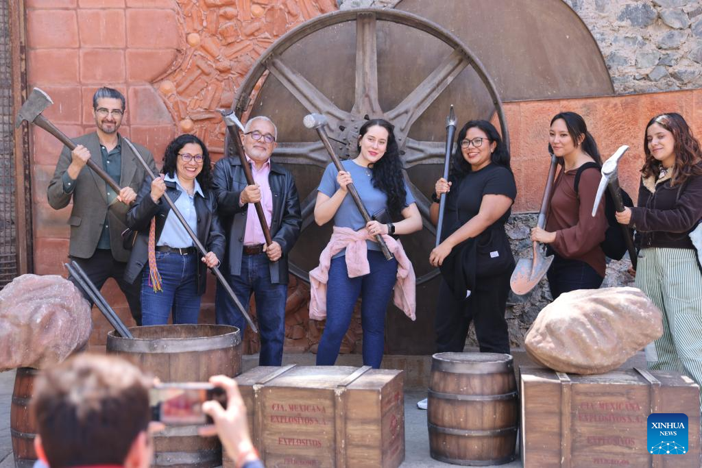 ZACATECAS, 10 mayo, 2025 (Xinhua) -- Imagen del 7 de mayo de 2025 de visitantes posando para fotografías en la entrada de la Mina El Edén, en Zacatecas, en el estado de Zacatecas, México. Alguna vez una importante región minera de plata en América Latina, Zacatecas había impulsado la prosperidad histórica de la ciudad con su riqueza mineral. A medida que los recursos se agotaban, la ciudad cambió su enfoque hacia la cultura y el turismo preservando su rica arquitectura colonial y su patrimonio minero, incluido el centro histórico de la ciudad, reconocido como Sitio Patrimonio Cultural de la Humanidad por la UNESCO, y la icónica Mina El Edén, y atrayendo a numerosos turistas de todo el mundo. (Xinhua/Li Mengxin)