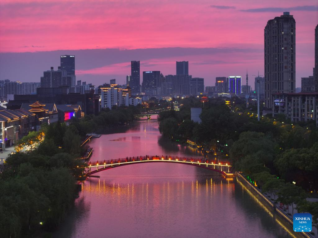HUAI'AN, 12 mayo, 2025 (Xinhua) -- Vista aérea tomada con un dron el 10 de mayo de 2025 de una sección del corredor cultural, en Huai'an, en la provincia de Jiangsu, en el este de China. En los últimos años, Huai'an ha estado construyendo un corredor de 125 kilómetros a lo largo de la vía fluvial del Gran Canal, que hace hincapié en el patrimonio cultural, la preservación ecológica, el crecimiento económico y la habitabilidad. Está previsto que el pintoresco corredor ribereño se convierta en un lugar donde coexistan la naturaleza, el patrimonio y la modernización. (Xinhua/Ji Chunpeng)