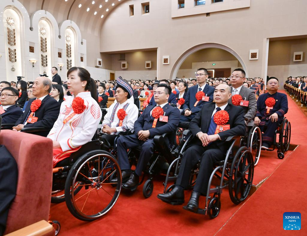 BEIJING, 16 mayo, 2025 (Xinhua) -- Un encuentro para homenajear a las personas con discapacidad que son modelos a seguir, así como a quienes han hecho contribuciones sobresalientes en beneficio de los discapacitados se lleva a cabo en Beijing, capital de China, el 16 de mayo de 2025. Un total de 200 discapacitados que representan modelos a seguir, junto con 60 personas excepcionales que apoyan los servicios para este colectivo y 200 unidades destacadas, recibieron homenajes en el encuentro. (Xinhua/Gao Jie)