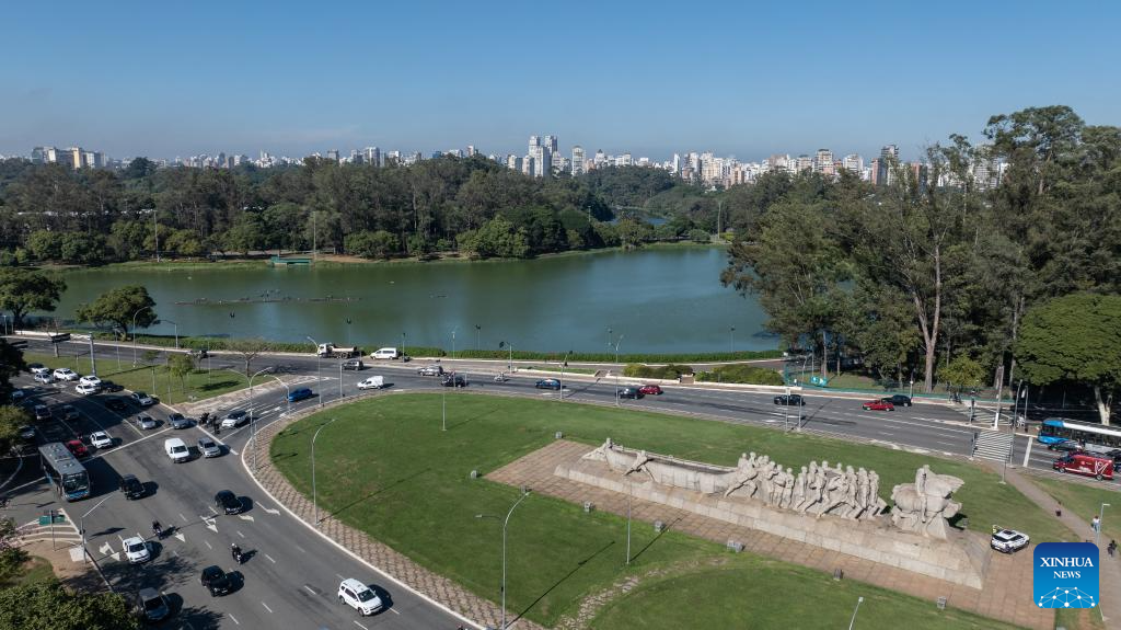 SAO PAULO, 17 mayo, 2025 (Xinhua) -- Vista aérea tomada con un dron el 15 de mayo de 2025 del Monumento a las Bandeiras cerca del Parque Ibirapuera, en Sao Paulo, Brasil. (Xinhua/Wang Tiancong)