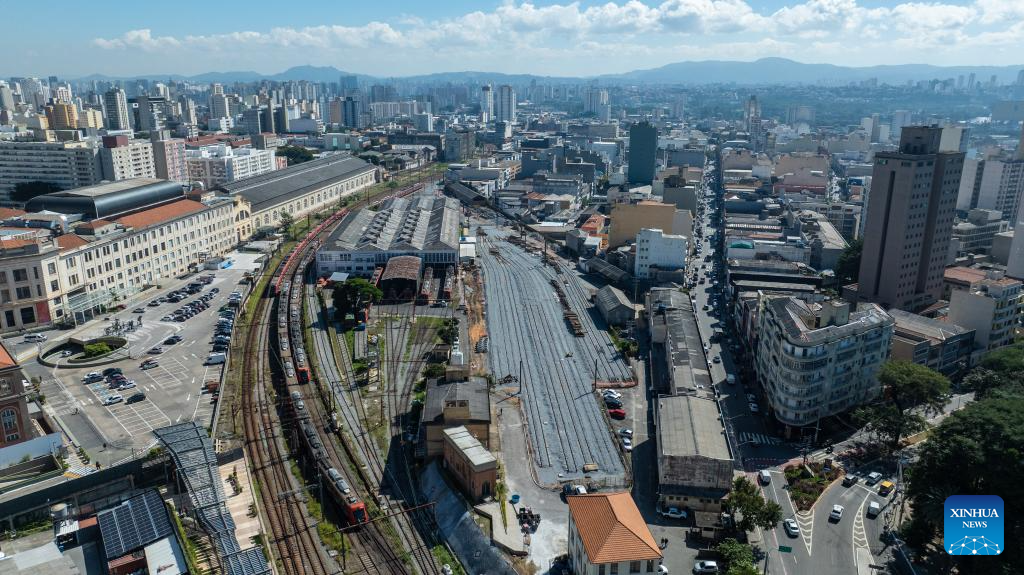 SAO PAULO, 17 mayo, 2025 (Xinhua) -- Vista aérea tomada con un dron el 15 de mayo de 2025 de un centro ferroviario, en el distrito de Luz, en Sao Paulo, Brasil. (Xinhua/Wang Tiancong)