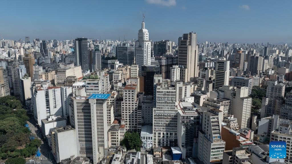 SAO PAULO, 17 mayo, 2025 (Xinhua) -- Vista aérea tomada con un dron el 15 de mayo de 2025 de un paisaje urbano del centro de Sao Paulo, Brasil. (Xinhua/Wang Tiancong)