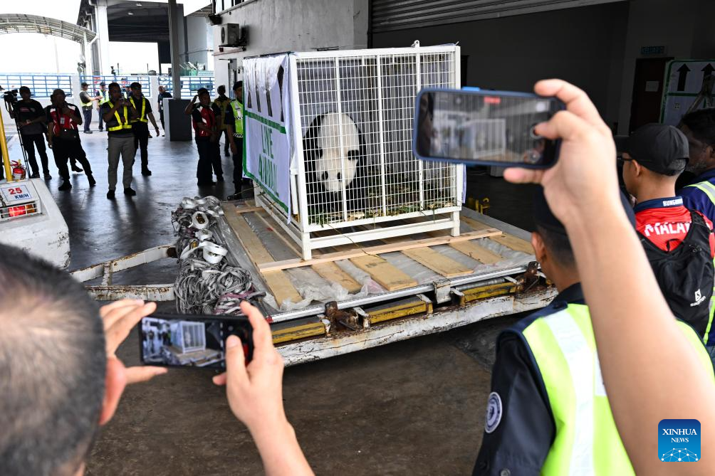 KUALA LUMPUR, 18 mayo, 2025 (Xinhua) -- Empleados trasladan a la pareja de pandas gigantes Xing Xing y Liang Liang, en el Aeropuerto Internacional de Kuala Lumpur, en Kuala Lumpur, Malasia, el 18 de mayo de 2025. Los malasios se despidieron entre lágrimas el domingo de la pareja de pandas gigantes Xing Xing y Liang Liang, quienes regresarán a China después de su estadía de 11 años en el país del sudeste asiático. (Xinhua/Cheng Yiheng)