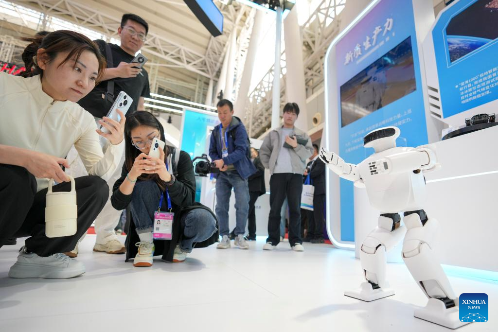 HARBIN, 19 mayo, 2025 (Xinhua) -- Personas toman fotografías de un robot humanoide en la 34 Feria Internacional de Economía y Comercio de Harbin, en Harbin, capital de la provincia de Heilongjiang, en el noreste de China, el 19 de mayo de 2025. La feria presentó tecnologías de vanguardia como conducción autónoma, satélites comerciales y robots humanoides de más de 100 empresas tecnológicas. (Xinhua/Wang Jianwei)