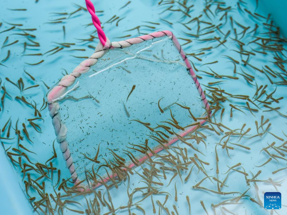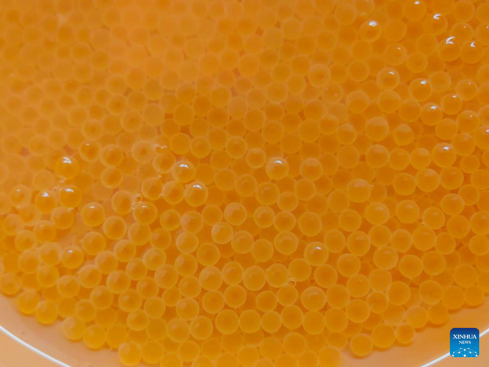 ABA, 19 mayo, 2025 (Xinhua) -- Imagen del 2 de marzo de 2025 de huevos fertilizados de taimen de Sichuan de segunda generación en una estación de proliferación y liberación de peces operada por una empresa dependiente de PowerChina Hydropower Development Group Co., Ltd., en la ciudad de Barkam, en la prefectura autónoma tibetana y qiang de Aba, en la provincia de Sichuan, en el suroeste de China. China ha tenido éxito en la cría artificial a gran escala del taimen de Sichuan, una especie de pez en peligro de extinción bajo protección de primera clase de la nación, dijo el lunes el Instituto de Investigación Pesquera del Río Heilongjiang de la Academia China de Ciencias Pesqueras. (Xinhua)