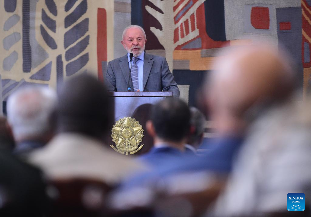 Imagen del 19 de mayo de 2025 del presidente brasileño, Luiz Inácio Lula da Silva, reaccionando durante la inauguración del II Diálogo Brasil-Africa sobre Seguridad Alimentaria, Combate a la Pobreza y Desarrollo Rural, realizado en el Palacio de Itamaraty, en Brasilia, Brasil. Lula da Silva criticó el lunes el elevado gasto global en armamentos y guerras, y defendió la necesidad urgente de canalizar más recursos hacia la lucha contra el hambre y el desarrollo rural sostenible, especialmente en Africa. (Xinhua/Lucio Tavora)
