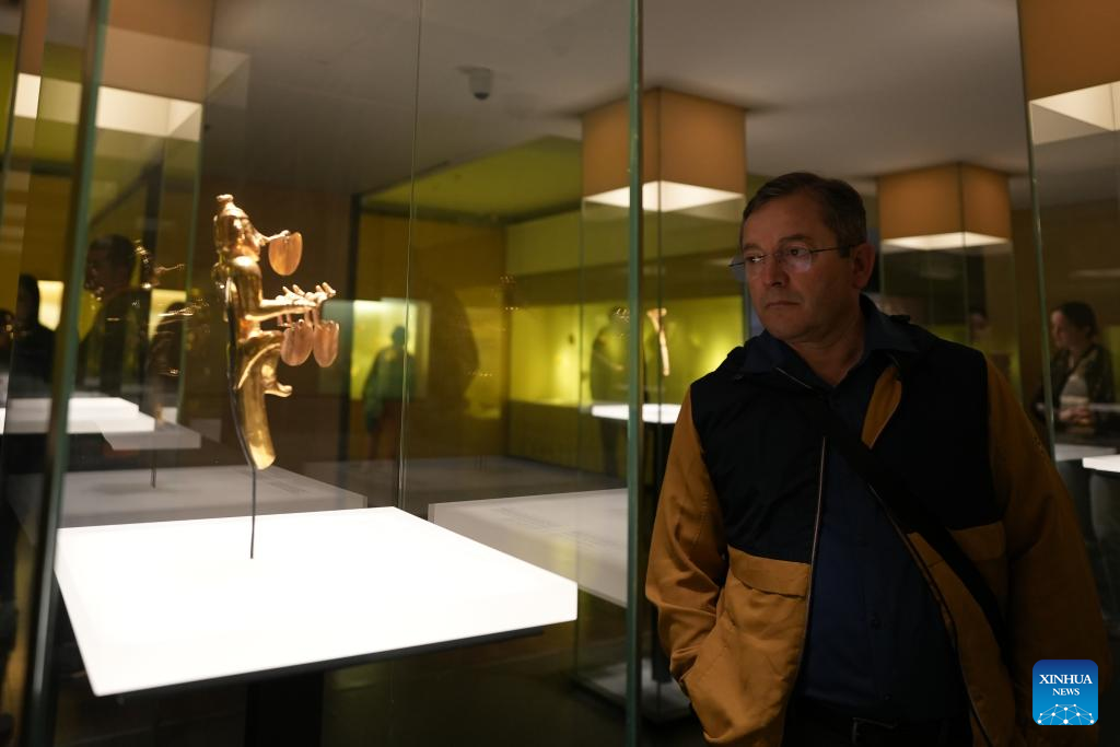 Un hombre visita una exposición en el marco de la conmemoración del Día Mundial de los Museos, en el Museo del Oro, en la ciudad de Bogotá, capital de Colombia, el 20 de mayo de 2025. El Museo del Oro de Bogotá, uno de los referentes culturales más emblemáticos de la capital colombiana, celebró el pasado domingo el Día Mundial de los Museos con una agenda especial dedicada a resaltar la importancia de la mayor colección de orfebrería indígena del país, así como su preservación como legado y patrimonio de todos los colombianos. (Xinhua/Andrés Moreno)