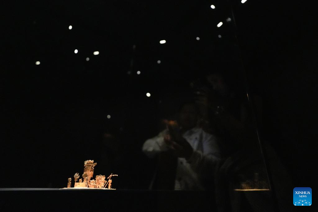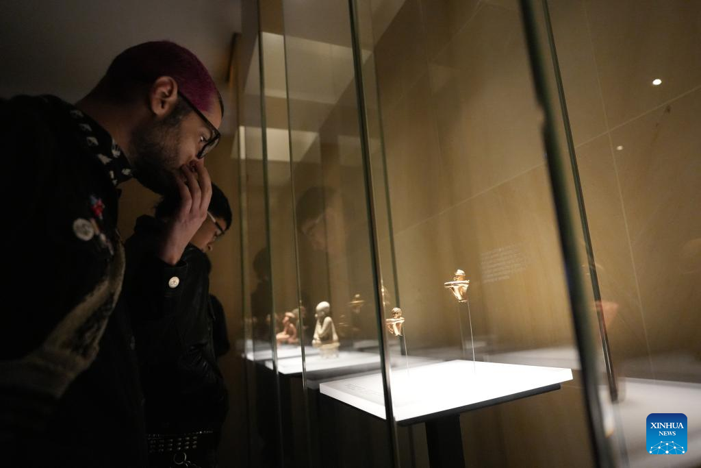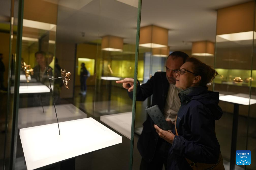 Imagen del 20 de mayo de 2025 de una pieza exhibida en una exposición en el marco de la conmemoración del Día Mundial de los Museos, en el Museo del Oro, en la ciudad de Bogotá, capital de Colombia. El Museo del Oro de Bogotá, uno de los referentes culturales más emblemáticos de la capital colombiana, celebró el pasado domingo el Día Mundial de los Museos con una agenda especial dedicada a resaltar la importancia de la mayor colección de orfebrería indígena del país, así como su preservación como legado y patrimonio de todos los colombianos. (Xinhua/Andrés Moreno)