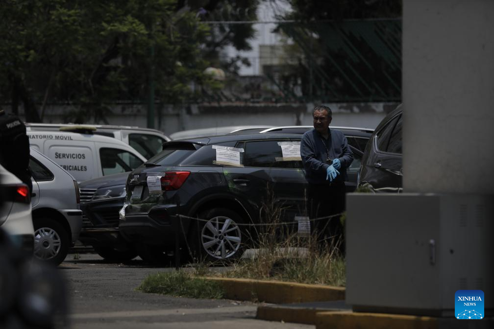 Imagen del 20 de mayo de 2025 del sitio de un ataque contra Ximena Guzmán, secretaria particular de la jefa de Gobierno de la Ciudad de México, Clara Brugada, en la Ciudad de México, capital de México. En un ataque directo fueron asesinados la mañana del martes dos colaboradores cercanos de la jefa de Gobierno de la Ciudad de México, Clara Brugada: su secretaria particular, Ximena Guzmán, y su asesor, José Muñoz. (Xinhua/Str)