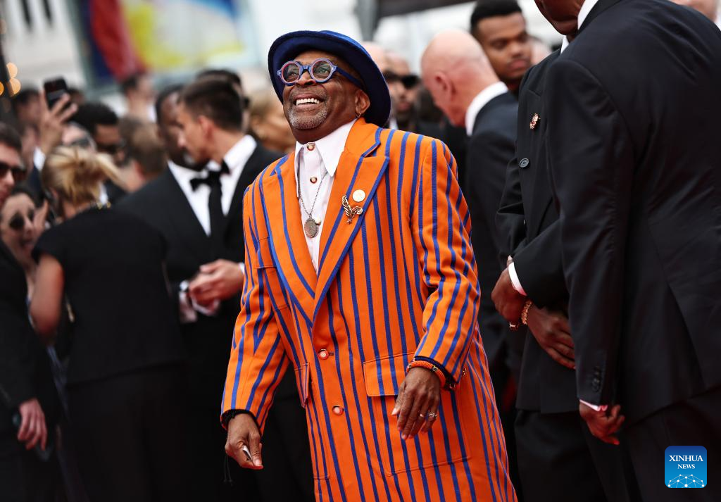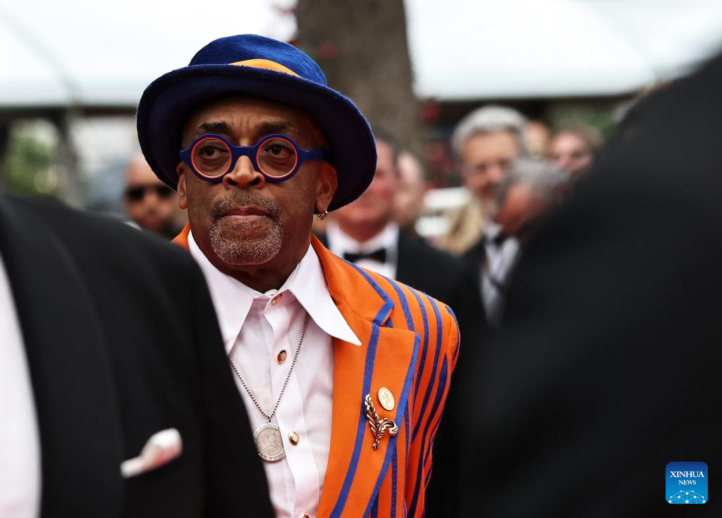 (250520) -- CANNES, 20 mayo, 2025 (Xinhua) -- Imagen del 19 de mayo de 2025 del director estadounidense Spike Lee, llegando a la proyección de la película "Highest 2 Lowest" en la 78 edición del Festival de Cine de Cannes, en Cannes, en el sur de Francia. (Xinhua/Gao Jing) (oa) (ah) (vf)