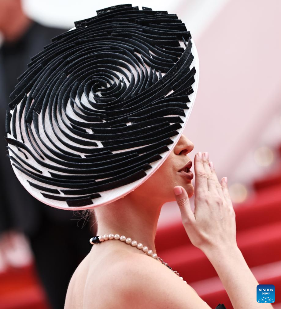 CANNES, 20 mayo, 2025 (Xinhua) -- Imagen del 19 de mayo de 2025 de una invitada llegando a la proyección de la película "Highest 2 Lowest" en la 78 edición del Festival de Cine de Cannes, en Cannes, en el sur de Francia. (Xinhua/Gao Jing)