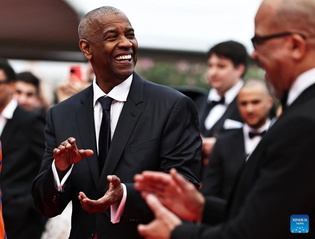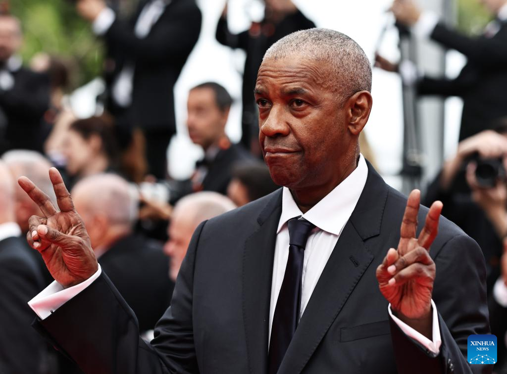 CANNES, 20 mayo, 2025 (Xinhua) -- Imagen del 19 de mayo de 2025 del actor estadounidense, Denzel Washington, llegando a la proyección de la película "Highest 2 Lowest" en la 78 edición del Festival de Cine de Cannes, en Cannes, en el sur de Francia. (Xinhua/Gao Jing)