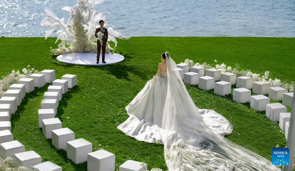BEIJING, 21 mayo, 2025 (Xinhua) -- Imagen del 10 de mayo de 2025 de una pareja celebrando una boda de destino, en la prefectura autónoma de la etnia bai de Dali, en la provincia de Yunnan, en el suroeste de China. La fecha del 20 de mayo tiene un significado especial en China, ya que su pronunciación china "520" se asemeja a la frase "wo ai ni", que significa "Te amo". Es una época de alta demanda de registros matrimoniales, con largas filas en los registros matrimoniales de todo el país. (Xinhua)