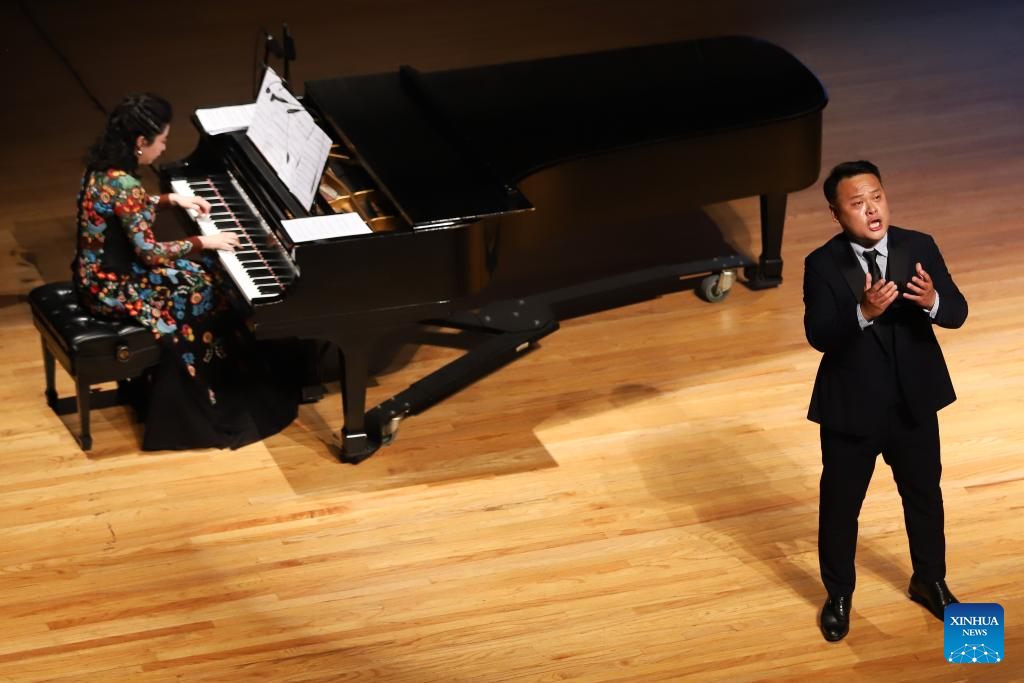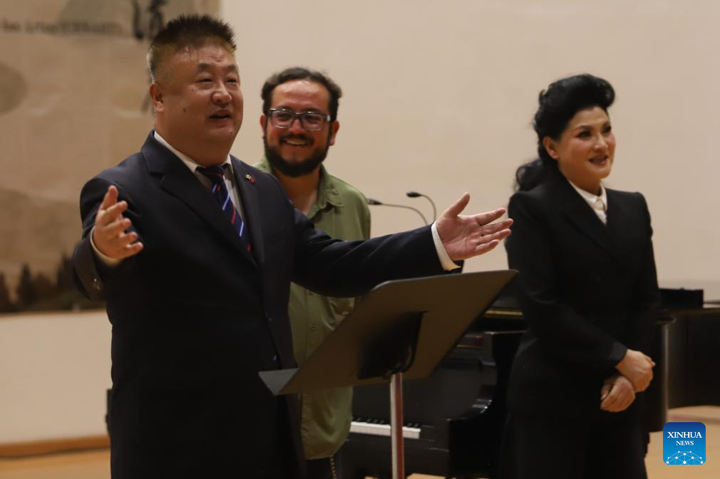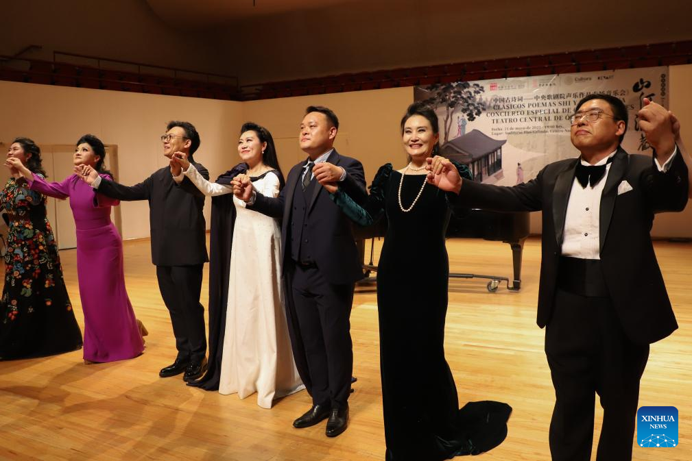 MÉXICO, 22 may (Xinhua) -- Emotivas obras vocales inspiradas en la poesía clásica china shi y ci, interpretadas por virtuosos artistas de la China National Opera House (CNOH), cautivaron al público mexicano durante un conmovedor concierto celebrado la noche del miércoles en la Ciudad de México.