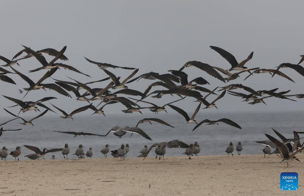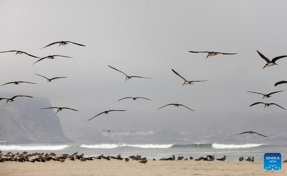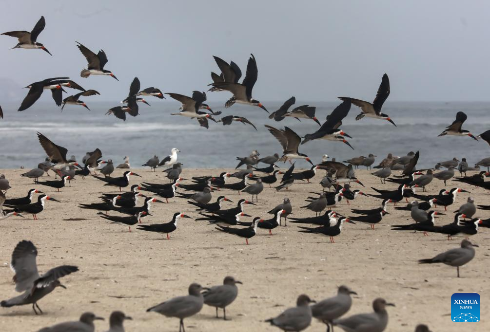 LIMA, 22 mayo, 2025 (Xinhua) -- Aves marinas son vistas en la playa Santa Rosa en el marco del Día Internacional de la Diversidad Biológica, en el distrito de Punta Negra, en el sur de Lima, Perú, el 22 de mayo de 2025. (Xinhua/Mariana Bazo)