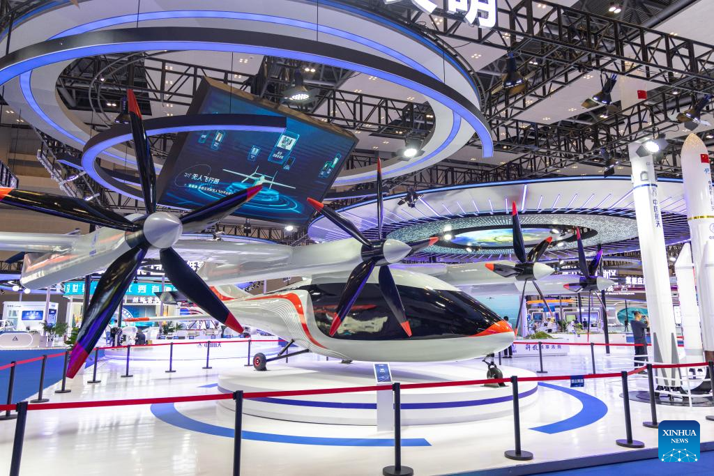 CHONGQING, 23 mayo, 2025 (Xinhua) -- Un vehículo aéreo no tripulado es visto en la VII Feria Internacional de Inversión y Comercio del Oeste de China, en el municipio de Chongqing, en el suroeste de China, el 23 de mayo de 2025. Varios productos relacionados con la economía de baja altitud atrajeron la atención de los visitantes en la feria. (Xinhua/Chen Cheng)