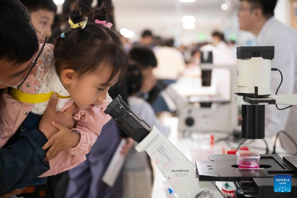 HARBIN, 24 mayo, 2025 (Xinhua) -- Una niña observa a través de un microscopio durante una jornada de puertas abiertas del Instituto de Investigación Veterinaria de Harbin, en Harbin, capital de la provincia de Heilongjiang, en el noreste de China, el 24 de mayo de 2025. El Instituto de Investigación Veterinaria de Harbin, dependiente de la Academia de Ciencias Agrícolas de China, celebró el sábado una jornada de puertas abiertas con numerosas actividades de divulgación científica. (Xinhua/Zhang Tao)