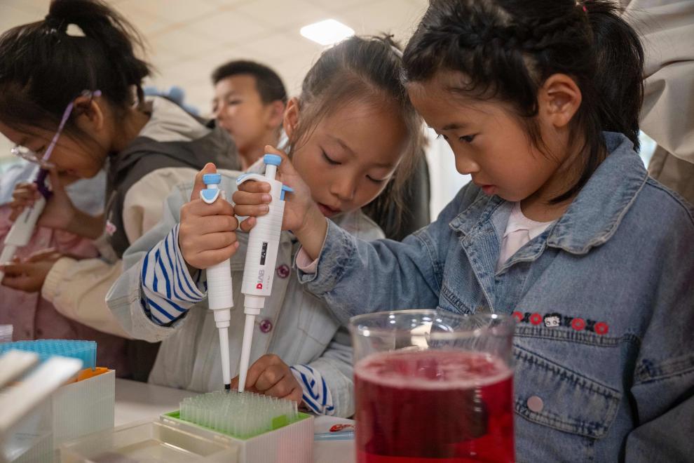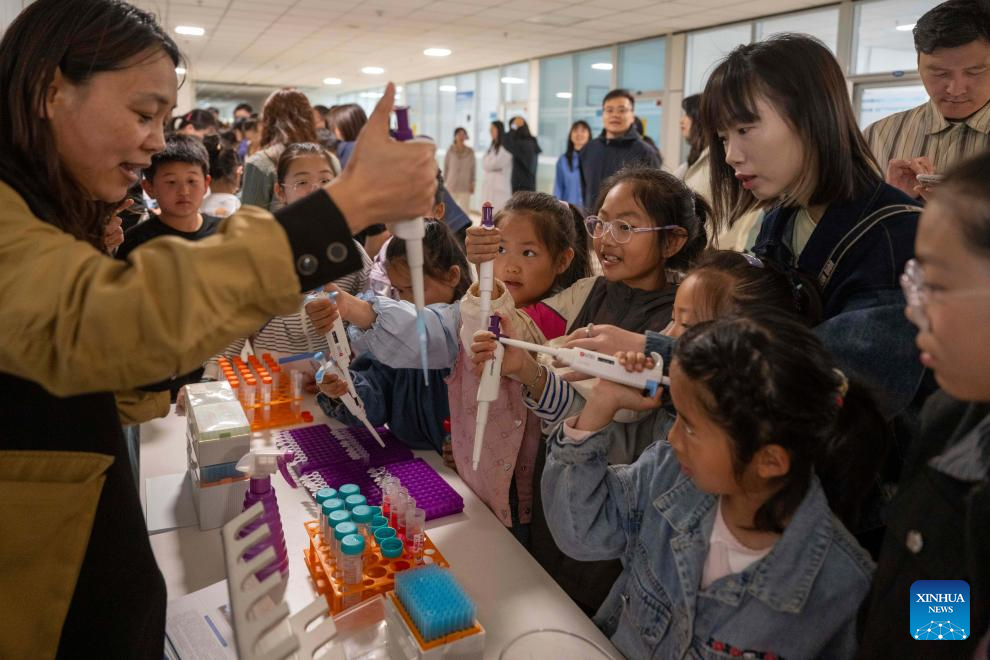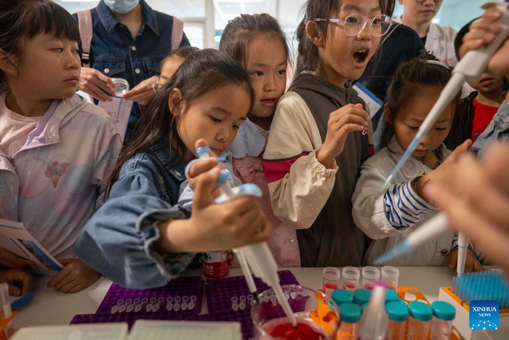 HARBIN, 24 mayo, 2025 (Xinhua) -- Niños prueban equipos científicos interactivos durante una jornada de puertas abiertas del Instituto de Investigación Veterinaria de Harbin, en Harbin, capital de la provincia de Heilongjiang, en el noreste de China, el 24 de mayo de 2025. El Instituto de Investigación Veterinaria de Harbin, dependiente de la Academia de Ciencias Agrícolas de China, celebró el sábado una jornada de puertas abiertas con numerosas actividades de divulgación científica. (Xinhua/Zhang Tao)