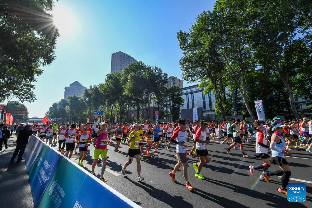 CHANGCHUN, 25 mayo, 2025 (Xinhua) -- Corredores compiten durante el Maratón de Hongqi Changchun 2025, en Changchun, en la provincia de Jilin, en el noreste de China, el 25 de mayo de 2025. (Xinhua/Zhang Nan)