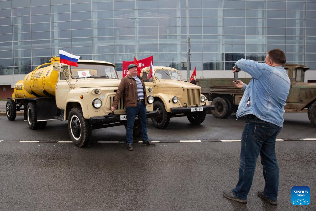 SAN PETERSBURGO, 25 mayo, 2025 (Xinhua) -- Imagen del 24 de mayo de 2025 de vehículos antiguos exhibidos, en San Petersburgo, Rusia. Una exposición de vehículos antiguos se llevó a cabo el sábado como parte de las celebraciones del próximo 322° aniversario de la fundación de Rusia el 27 de mayo. (Xinhua/Irina Motina)