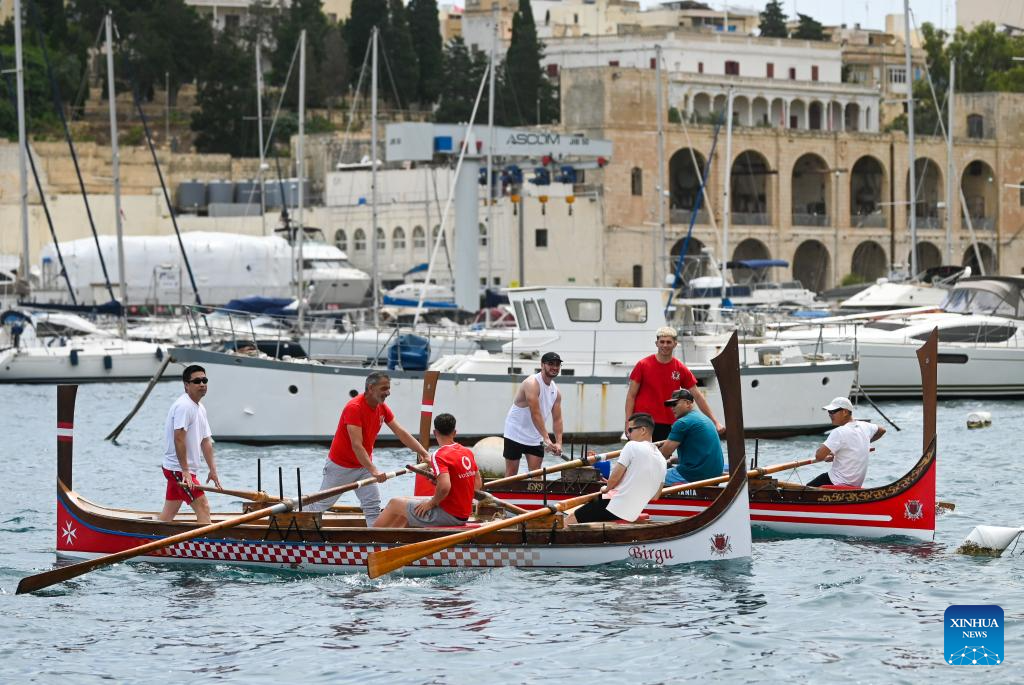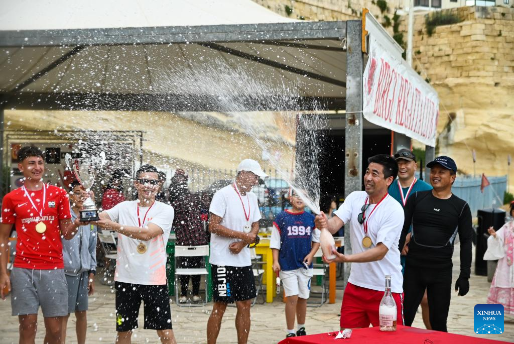 BIRGU, 25 mayo, 2025 (Xinhua) -- Imagen del 24 de mayo de 2025 de personas participando en la primera carrera amistosa de botes del dragón de la Copa Duanwu, en Birgu, Malta. La carrera de botes dragón se celebró el sábado en la histórica ciudad de Birgu, en el este de Malta, para conmemorar el tradicional Festival de Botes Dragón chino. También conocido como Festival Duanwu, el Festival del Bote del Dragón se celebra el quinto día del quinto mes del calendario lunar chino. Este año cae el 31 de mayo. El acto fue organizado conjuntamente por el Centro Cultural Chino de Malta, el Club de Regatas de Birgu, la Cámara de Comercio Chino-Maltesa y la Asociación de la Comunidad China de Malta. (Xinhua/Jonathan Borg)
