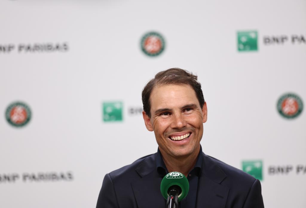 PARIS, 26 mayo, 2025 (Xinhua) -- Imagen del 25 de mayo de 2025 del ex tenista español, Rafael Nadal, reaccionando durante una conferencia de prensa después de una ceremonia para honrar su carrera, durante el torneo de tenis Abierto de Francia, en la Cancha Philippe Chatrier, en Roland Garros, en París, Francia. (Xinhua/Li Jing)