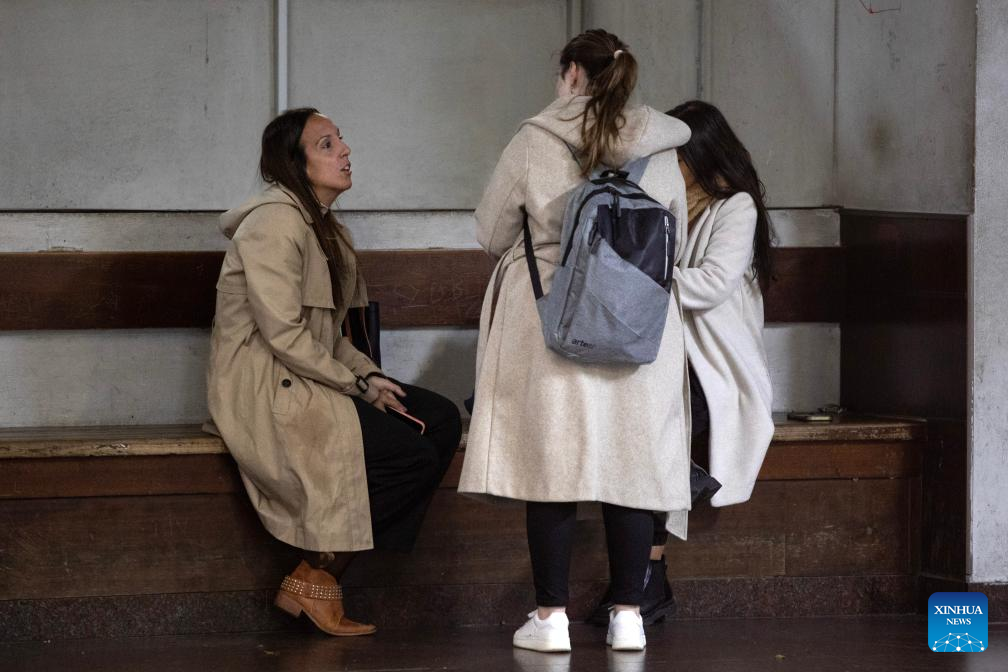 La psiquiatra Agustina Cosachov (i), reacciona previo a una nueva jornada del juicio por la muerte del exfutbolista argentino, Diego Armando Maradona, en los tribunales de San Isidro, en la ciudad de Buenos Aires, capital de Argentina, el 27 de mayo de 2025. Una jueza que integraba el tribunal del juicio por la muerte del exfutbolista argentino, Diego Armando Maradona, fue apartada el martes de su cargo. (Xinhua/Martín Zabala)
