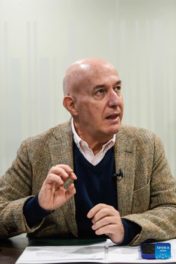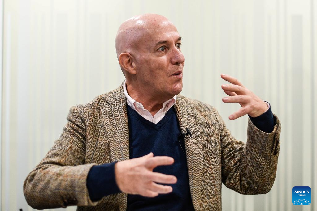 Imagen del 23 de mayo de 2025 del director para Latinoamérica y el Caribe del Centro para la Educación y la Cooperación Lingüística de China, Roberto Lafontaine, hablando durante una entrevista con la Agencia de Noticias Xinhua, en Santiago, capital de Chile. Lafontaine explicó a Xinhua que el auge de la enseñanza masiva del chino mandarín con los institutos Confucio en 2004 coincidió con la firma de un memorándum de entendimiento entre Chile y China para enseñar en colegios públicos de la nación austral el idioma del país asiático. (Xinhua/Jorge Villegas)