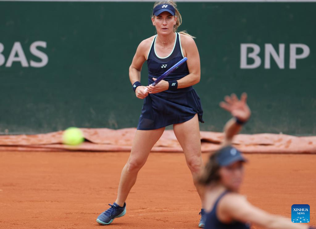 PARIS, 28 mayo, 2025 (Xinhua) -- Anhelina Kalinina/Xu Yifan (i) compiten durante el partido de primera ronda de dobles femeninos entre Anhelina Kalinina (Ucrania)/Xu Yifan (China) y Timea Babos (Hungría)/Luisa Stefani (Brasil), en el torneo de tenis Abierto de Francia, en Roland Garros, en París, Francia, el 28 de mayo de 2025. (Xinhua/Gao Jing)