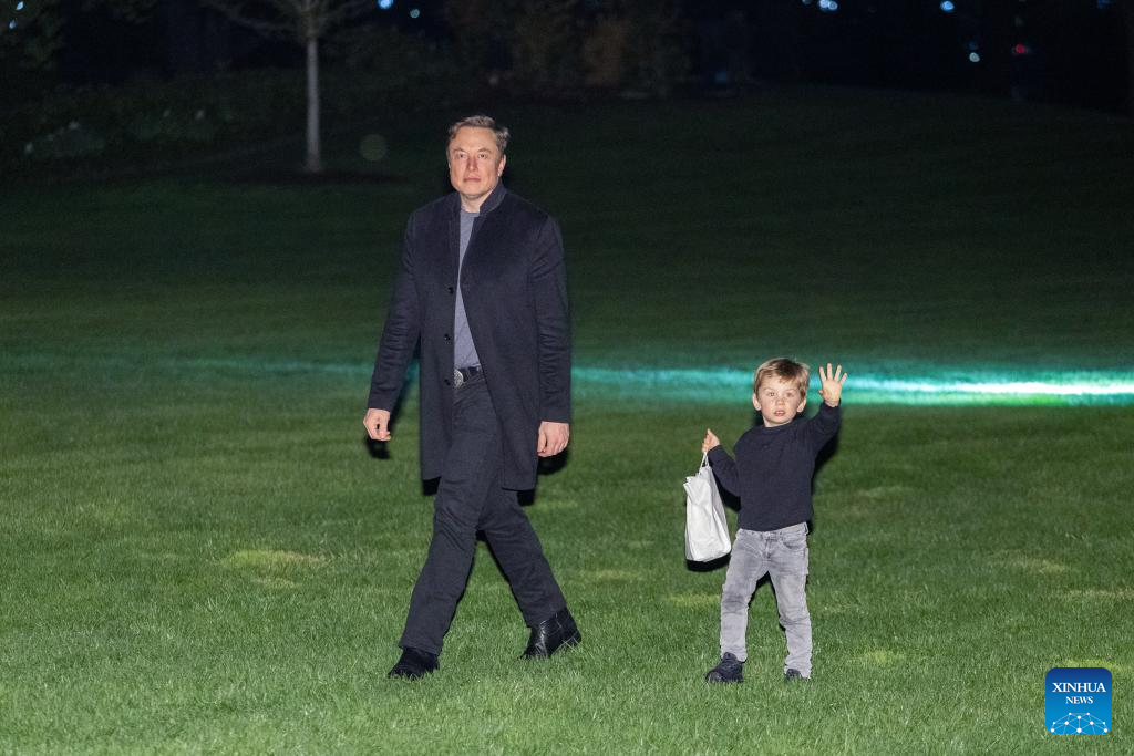 Imagen de archivo del 13 de abril de 2025 de Elon Musk y su hijo caminando a su llegada al Jardín Sur de la Casa Blanca, en Washington, D.C., Estados Unidos. El director ejecutivo de Tesla, Elon Musk, dijo el miércoles que deja su papel gubernamental como asesor del presidente de Estados Unidos, Donald Trump. (Xinhua/Hu Yousong)