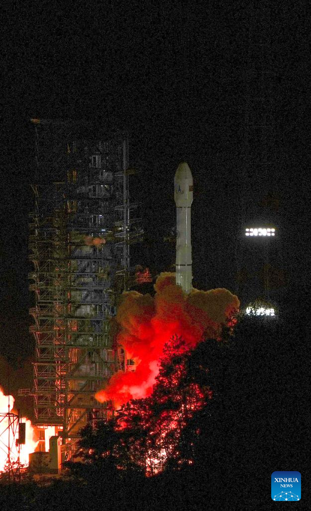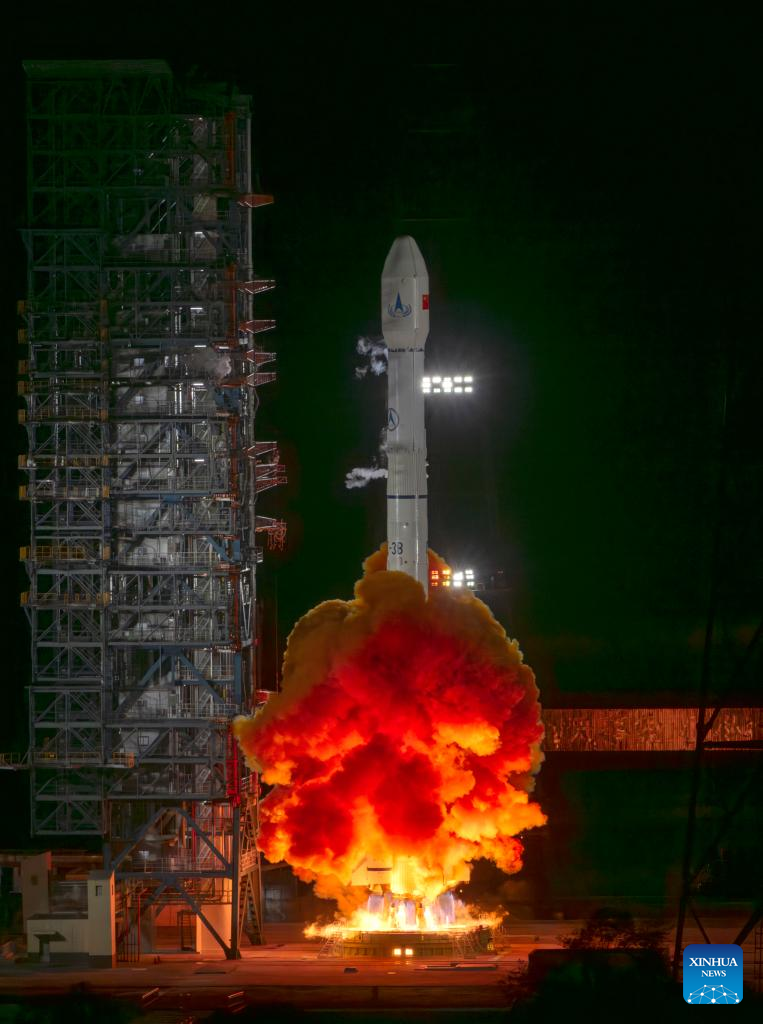 La sonda Tianwen-2 de China, a bordo de un cohete portador Gran Marcha-3B, despega del Centro de Lanzamiento de Satélites de Xichang, en la provincia de Sichuan, en el suroeste de China, el 29 de mayo de 2025. China lanzó en las primeras horas del jueves su primera misión para recoger muestras de un asteroide, la sonda Tianwen-2, en un esfuerzo por arrojar luz sobre la formación y la evolución de los asteroides y el sistema solar temprano. La misión Tianwen-2 busca lograr múltiples objetivos en el transcurso de esta misión de una década: recoger muestras del asteroide 2016H03 cercano a la Tierra y explorar el cometa 311P del cinturón principal ubicado más allá de Marte. (Xinhua/Ren Pengfei)