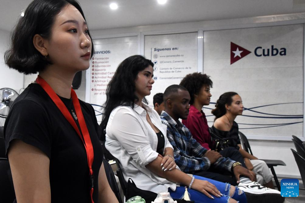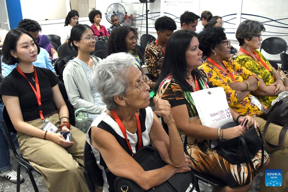 LA HABANA, 28 mayo, 2025 (Xinhua) -- Participantes asisten al I Taller Internacional de Estudios sobre China Sino-Habana 2025, en los salones de la sede de la Cámara de Comercio de Cuba, en La Habana, capital de Cuba, el 28 de mayo de 2025. Profesores chinos y cubanos del Instituto Confucio de La Habana intercambiaron sobre la enseñanza del idioma chino en el extranjero, como parte del I Taller Internacional de Estudios sobre China Sino-Habana 2025. (Xinhua/Joaquín Hernández)