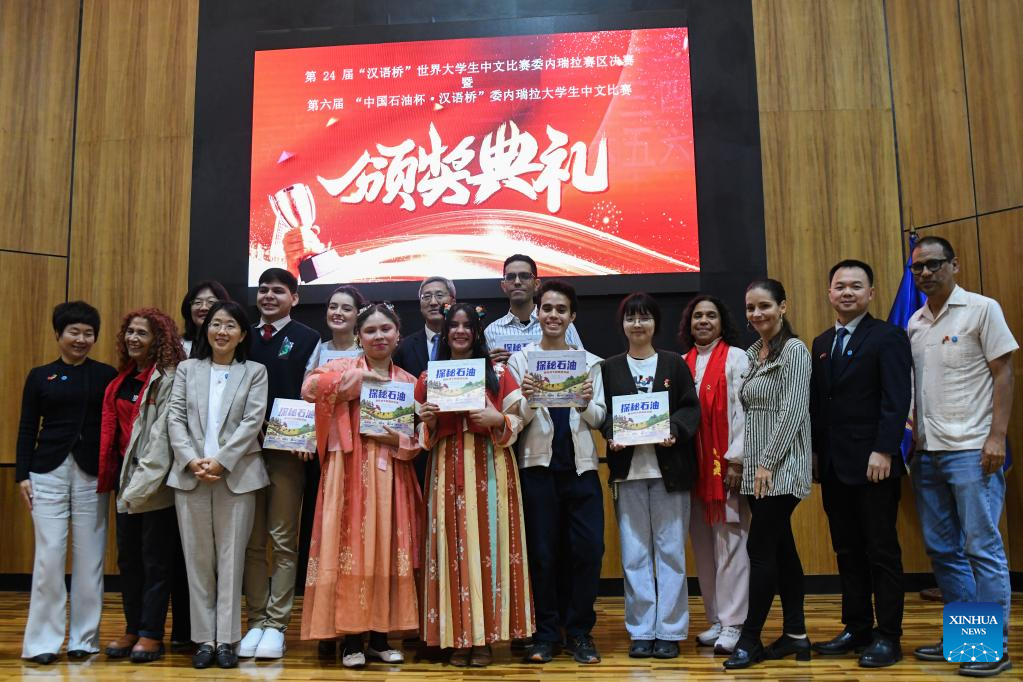 CARACAS, 29 may (Xinhua) -- Con entusiasmo y espíritu de intercambio cultural, estudiantes venezolanos participaron en la edición anual del concurso Puente Chino llevada a cabo el miércoles en el Gran Salón de la Universidad Venezolana de los Hidrocarburos (UVH), en la ciudad de Caracas.