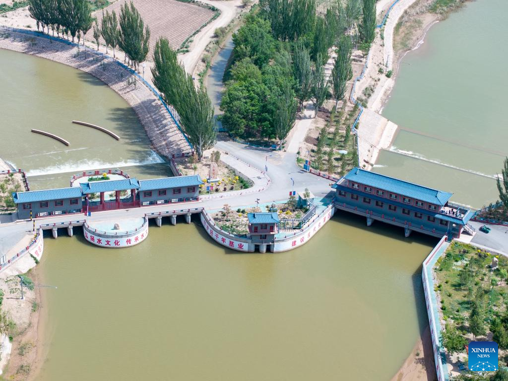 BAYANNUR, 29 mayo, 2025 (Xinhua) -- Vista aérea tomada con un dron el 28 de mayo de 2025 de un proyecto de control de agua, en el distrito de Linhe de Bayannur, en la región autónoma de Mongolia Interior, en el norte de China. La Zona de Riego de Hetao, ubicada en Bayannur, en la región autónoma de Mongolia Interior, en el norte de China, ha desviado agua del río Amarillo para riego desde la antigüedad. El proyecto de riego fue incluido en el Patrimonio Mundial de Estructuras de Riego en 2019. (Xinhua/Ma Jinrui)