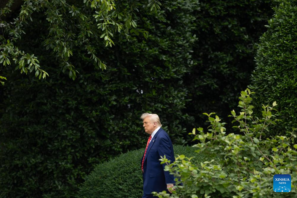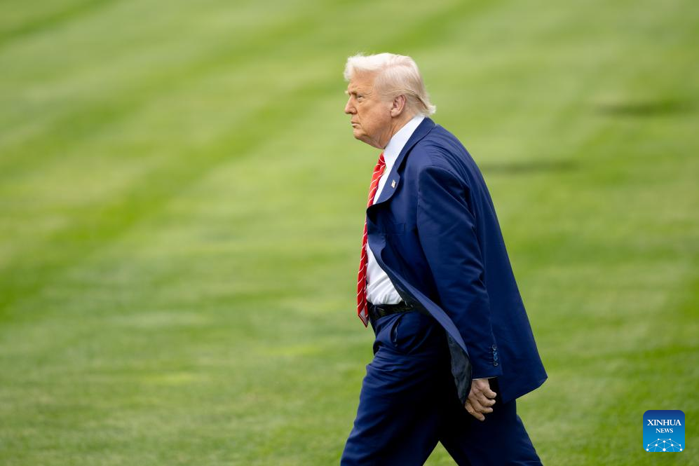 WASHINGTON, 30 mayo, 2025 (Xinhua) -- El presidente estadounidense, Donald Trump, camina para abordar el Marine One, en la Casa Blanca, en Washington, D.C., Estados Unidos, el 30 de mayo de 2025. La Corte Suprema de Estados Unidos suspendió el viernes una orden de un tribunal de distrito federal que mantenía protecciones de libertad condicional humanitaria vigentes para más de 500.000 migrantes de cuatro países: Cuba, Haití, Nicaragua y Venezuela. El tribunal también permitió a la administración Trump revocar el estatus legal temporal de alrededor de 350.000 migrantes venezolanos en otro caso. (Xinhua/Hu Yousong)