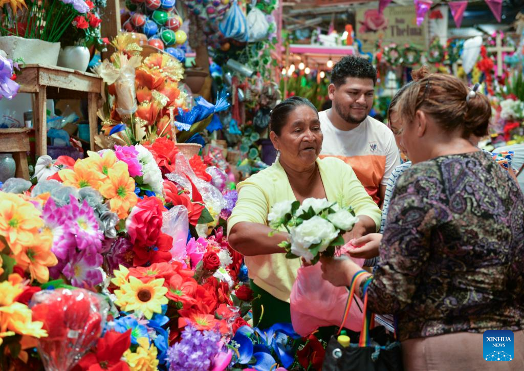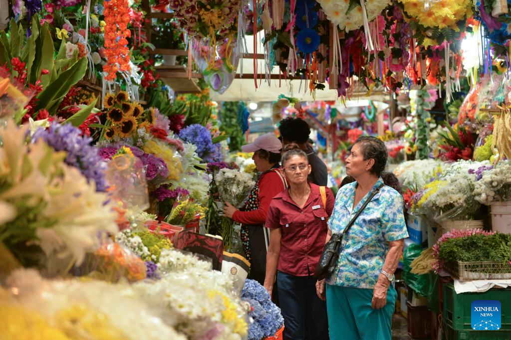 MANAGUA, 31 mayo, 2025 (Xinhua) -- Imagen del 30 de mayo de 2025 de mujeres buscando arreglos florales en el marco de la celebración del Día de las Madres, en Managua, capital de Nicaragua. Nicaragua celebró el viernes el Día de las Madres, una de las fechas más significativas del calendario nacional y que año tras año impulsa el comercio, moviliza a las familias y despierta muestras de cariño en todo el país. (Xinhua/Noelia Aráuz)