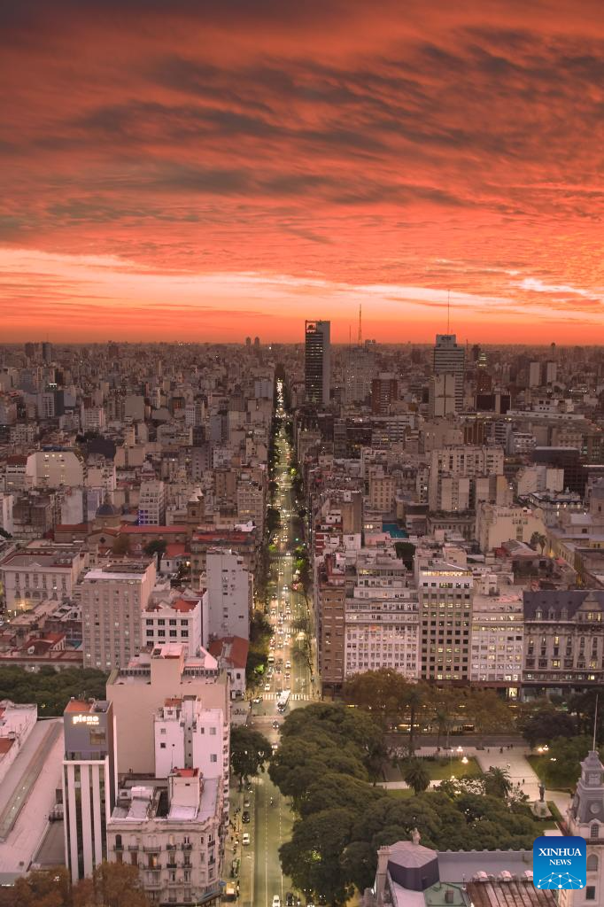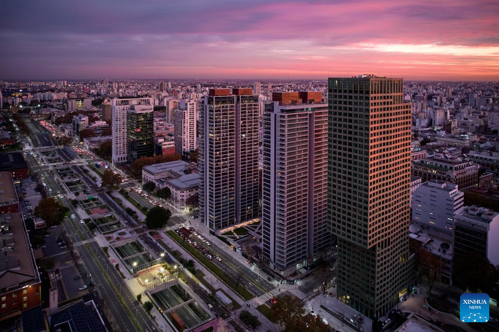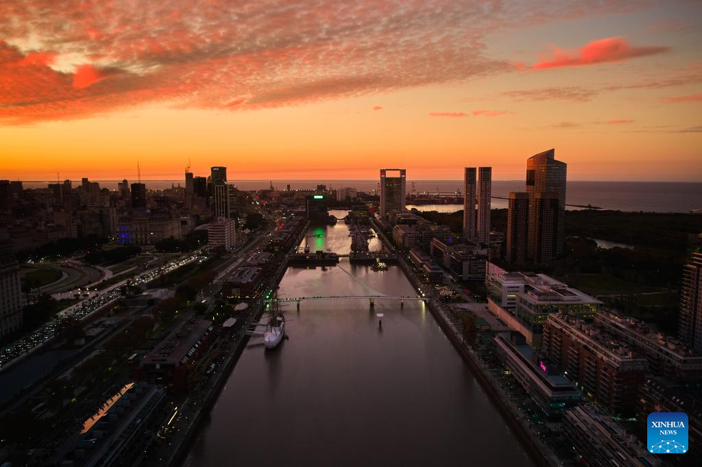 BUENOS AIRES, 31 mayo, 2025 (Xinhua) -- Vista aérea tomada con un dron el 30 de mayo de 2025 del paisaje al atardecer, en Buenos Aires, Argentina. (Xinhua/Meng Dingbo)