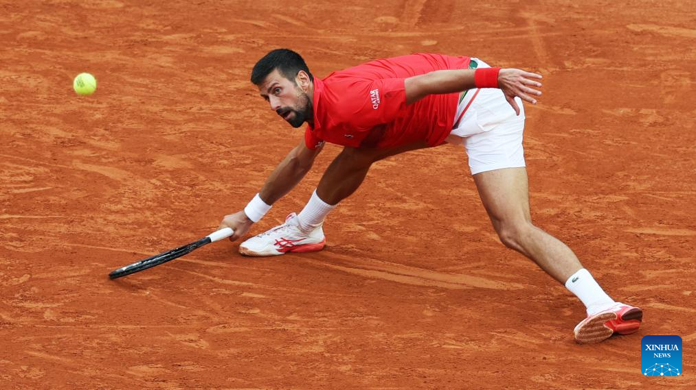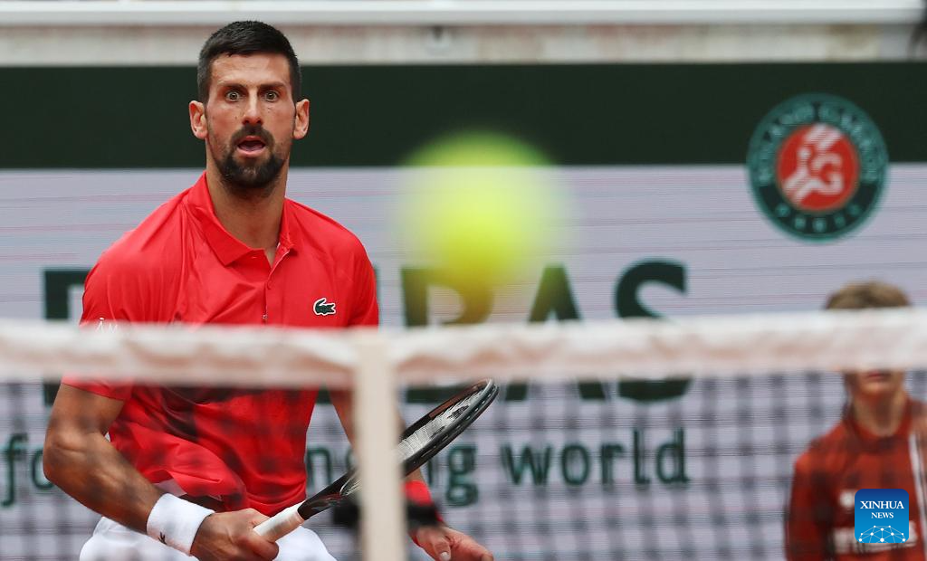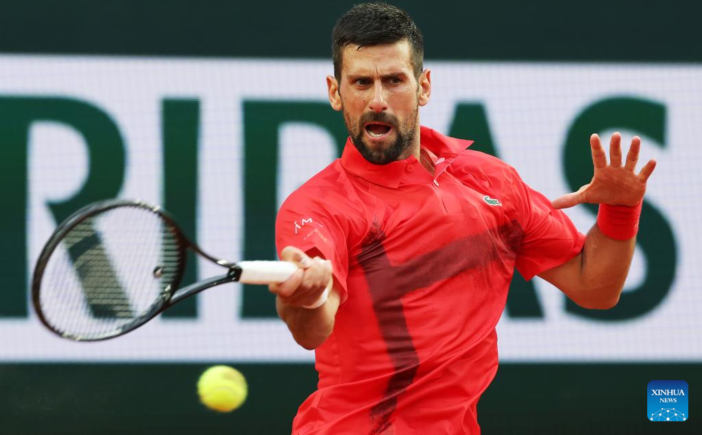 PARIS, 30 mayo, 2025 (Xinhua) -- Imagen del 29 de mayo de 2025 de Novak Djokovic, de Serbia, devolviendo la pelota durante el partido de segunda ronda de individuales masculinos ante Corentin Moutet, de Francia, en el torneo de tenis Abierto de Francia 2025, en París, Francia. (Xinhua/Gao Jing)