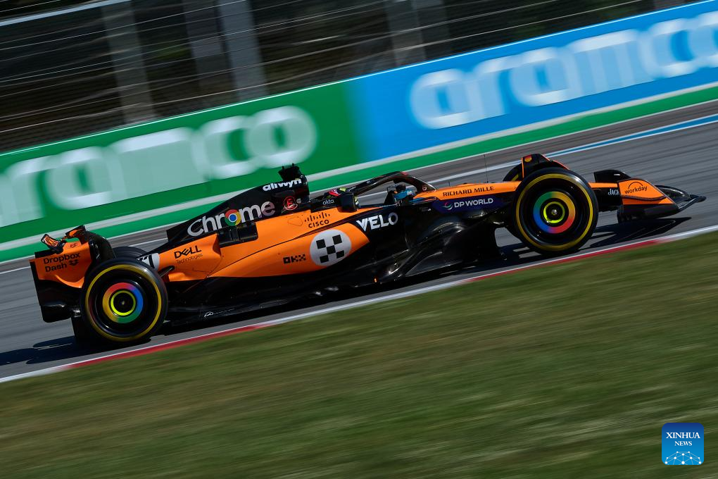 MONTMELO, 31 mayo, 2025 (Xinhua) -- Imagen del 30 de mayo de 2025 del piloto australiano de la escudería McLaren, Oscar Piastri, compitiendo durante una sesión de prácticas libres del Gran Premio de España de Fórmula Uno 2025 en el Circuito de Cataluña, en Montmeló, cerca de Barcelona, España. (Xinhua/Pablo Morano)