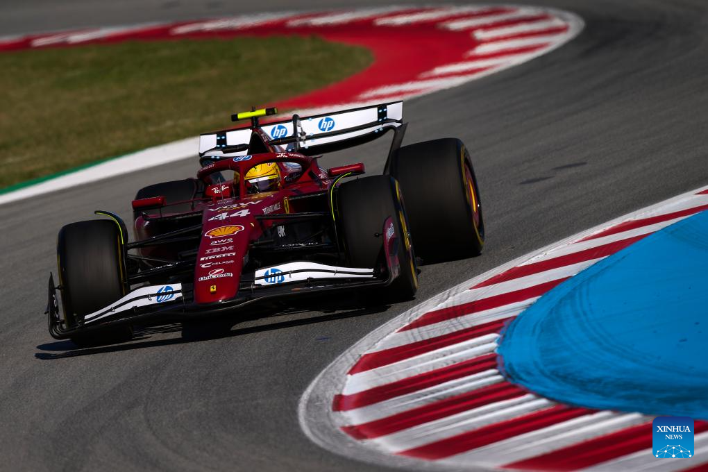 MONTMELO, 31 mayo, 2025 (Xinhua) -- Imagen del 30 de mayo de 2025 del piloto británico de la escudería Ferrari, Lewis Hamilton, compitiendo durante una sesión de prácticas libres del Gran Premio de España de Fórmula Uno 2025 en el Circuito de Cataluña, en Montmeló, cerca de Barcelona, España. (Xinhua/Pablo Morano)