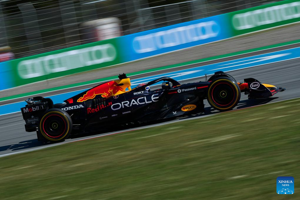 MONTMELO, 31 mayo, 2025 (Xinhua) -- Imagen del 30 de mayo de 2025 del piloto neerlandés de la escudería Red Bull, Max Verstappen, compitiendo durante una sesión de prácticas libres del Gran Premio de España de Fórmula Uno 2025 en el Circuito de Cataluña, en Montmeló, cerca de Barcelona, España. (Xinhua/Pablo Morano)