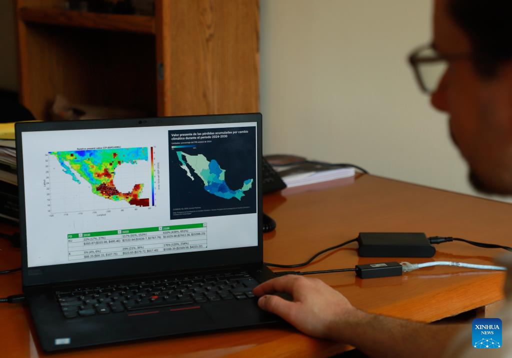 CIUDAD DE MÉXICO, 7 junio, 2025 (Xinhua) -- Imagen del 21 de mayo de 2025 del investigador Francisco Estrada Porrúa, experto en cambio climático de la Universidad Nacional Autónoma de México, observando en una pantalla un mapa climatológico de México, en la Ciudad de México, capital de México. México se está calentando a un ritmo alarmante, pues su temperatura ha aumentado 3,2 grados Celsius (°C) por siglo, por encima del promedio global de 2 °C, afirmó Estrada Porrúa. (Xinhua/Pool Contreras)