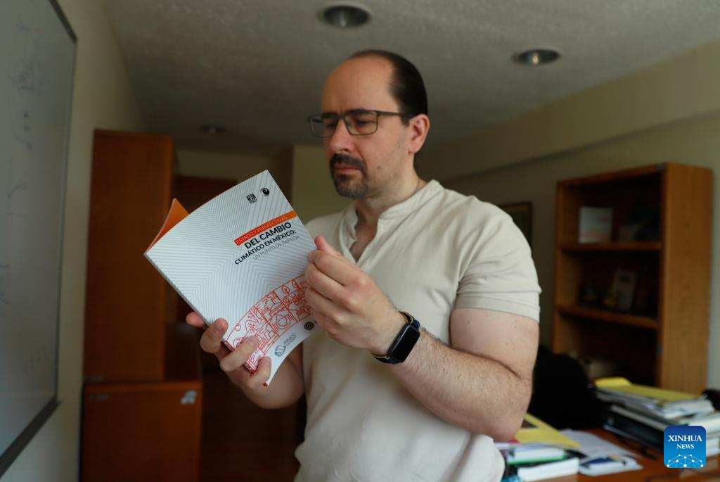CIUDAD DE MÉXICO, 7 junio, 2025 (Xinhua) -- Imagen del 21 de mayo de 2025 del investigador Francisco Estrada Porrúa, experto en cambio climático de la Universidad Nacional Autónoma de México, revisando un libro sobre el cambio climático en México, en la Ciudad de México, capital de México. México se está calentando a un ritmo alarmante, pues su temperatura ha aumentado 3,2 grados Celsius (°C) por siglo, por encima del promedio global de 2 °C, afirmó Estrada Porrúa. (Xinhua/Pool Contreras)