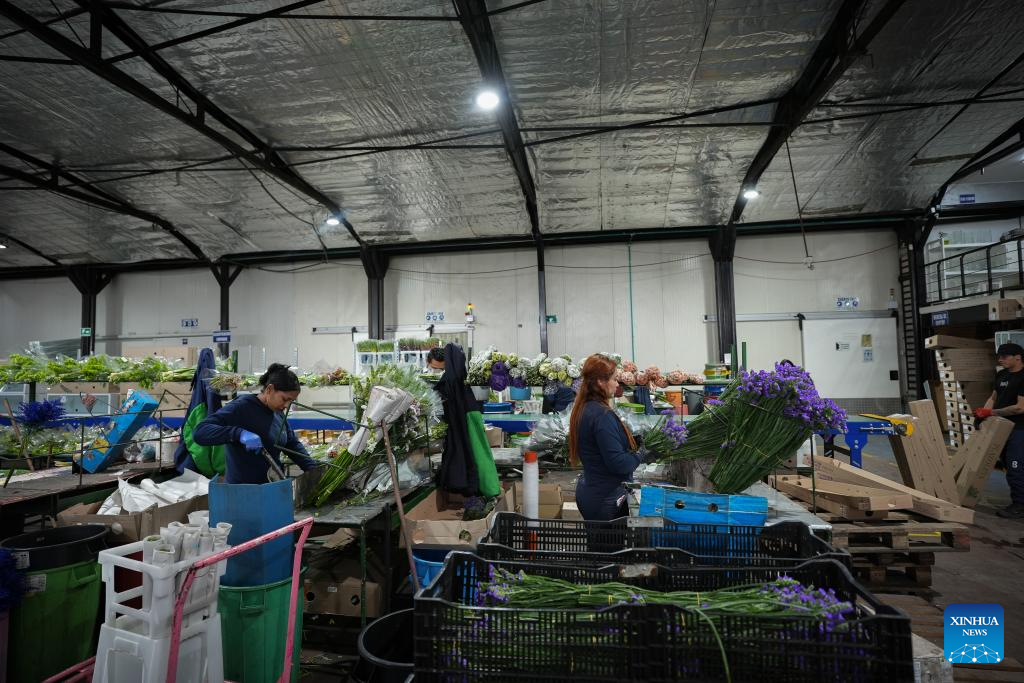 CUNDINAMARCA, 7 junio, 2025 (Xinhua) -- Imagen del 6 de junio de 2025 de personas trabajando en el área de empaque de una zona de cultivo de flores de la empresa Plazoleta Flowers, en Cundinamarca, Colombia. La unión del gremio de floricultura colombiana ha permitido afrontar el impacto negativo de las políticas arancelarias impuestas por Estados Unidos, principal cliente histórico en este mercado, resaltó Pablo Bazzani, gerente general de Plazoleta Flowers, exportadora de flores de alta calidad. (Xinhua/Andrés Moreno)