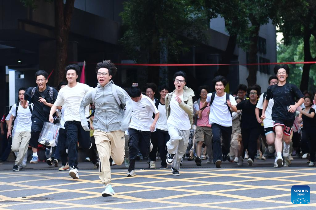 BEIJING, 9 junio, 2025 (Xinhua) -- Estudiantes salen corriendo de un sitio del examen nacional de ingreso a la universidad, en la ciudad de Changsha, en la provincia de Hunan, en el centro de China, el 9 de junio de 2025. El examen nacional de ingreso a la universidad de este año, también conocido como gaokao, comenzó el 7 de junio de este año. En algunas regiones, el examen finalizó el lunes. (Xinhua/Chen Zhenhai)