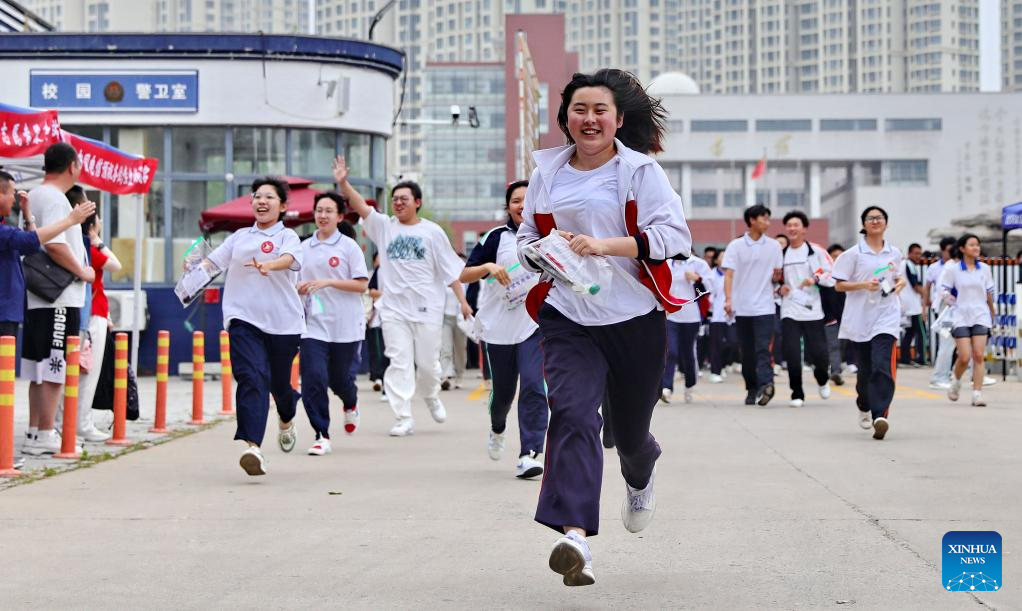 BEIJING, 9 junio, 2025 (Xinhua) -- Una estudiante sale corriendo de un sitio del examen nacional de ingreso a la universidad, en la ciudad de Qinhuangdao, en la provincia de Hebei, en el norte de China, el 9 de junio de 2025. El examen nacional de ingreso a la universidad de este año, también conocido como gaokao, comenzó el 7 de junio de este año. En algunas regiones, el examen finalizó el lunes. (Xinhua/Cao Jianxiong)