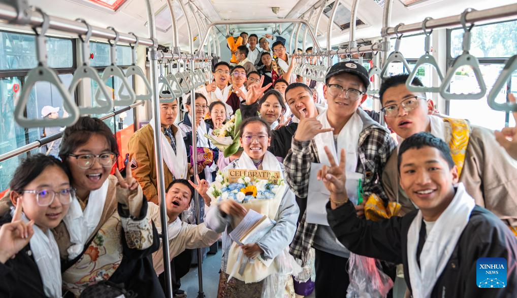 LHASA, 9 junio, 2025 (Xinhua) -- Estudiantes toman un autobús para salir después del examen en un sitio del examen nacional de ingreso a la universidad, en Lhasa, en la región autónoma de Xizang, en el suroeste de China, el 9 de junio de 2025. El examen nacional de ingreso a la universidad de este año, también conocido como gaokao, comenzó el 7 de junio de este año. En algunas regiones, el examen finalizó el lunes. (Xinhua/Tenzin Nyida)
