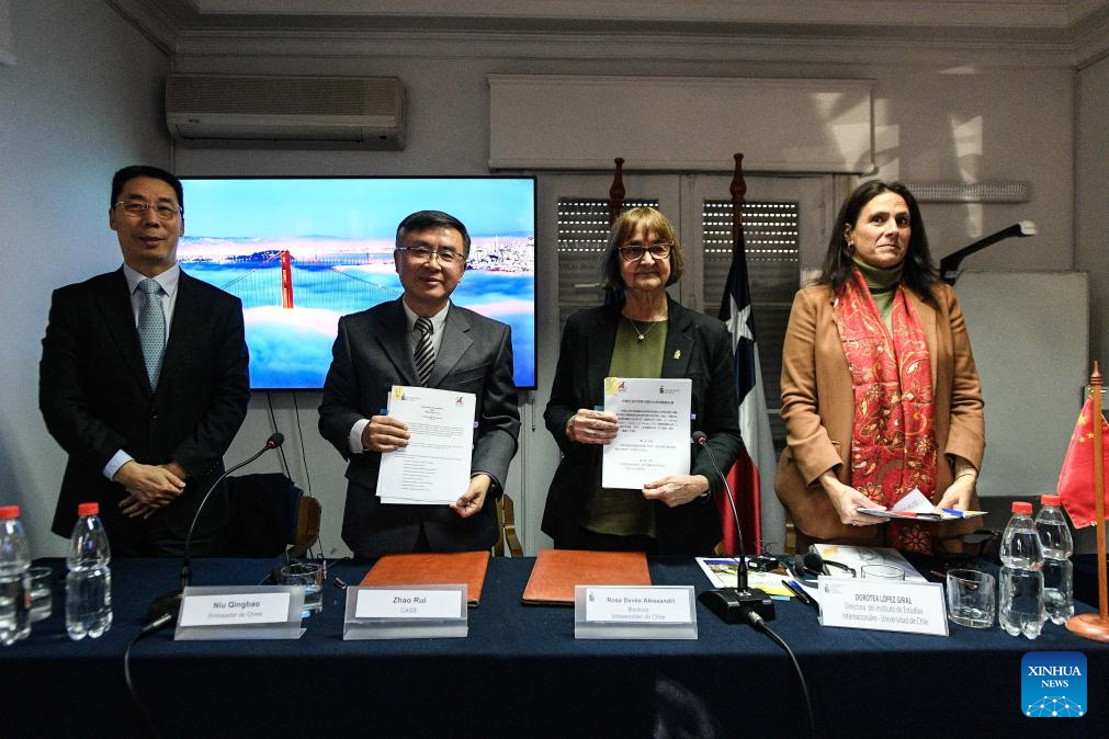SANTIAGO, 9 jun (Xinhua) -- La Universidad de Chile y la Academia China de Ciencias Sociales (CASS, por sus siglas en inglés) firmaron hoy lunes un acuerdo para la creación del Centro de Estudios Chinos, con el propósito de fortalecer el intercambio académico y estudiantil.