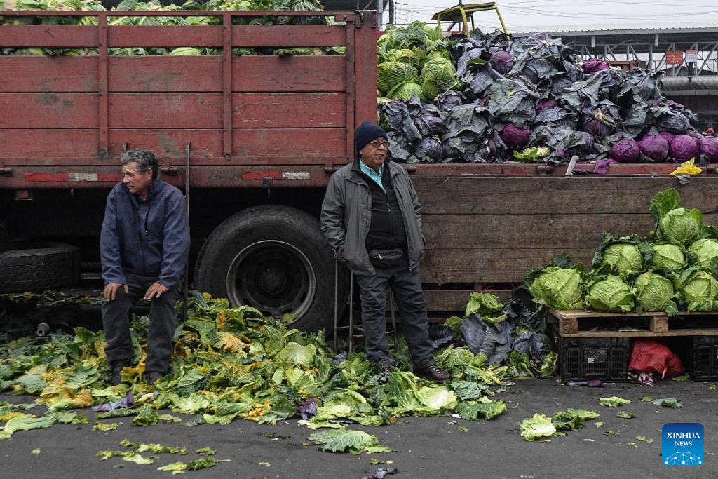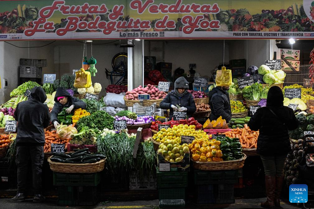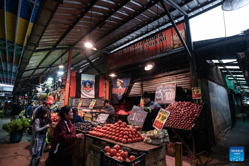 SANTIAGO, 11 junio, 2025 (Xinhua) -- Vendedores esperan por clientes en un puesto de verduras en el mercado La Vega Central, en Santiago, capital de Chile, el 11 de junio de 2025. Analistas del mercado chileno elevaron a 2,2 por ciento su proyección de crecimiento de la economía del país sudamericano este año, tras estimar un 2 por ciento el mes anterior, informó el martes el Banco Central de Chile. (Xinhua/Jorge Villegas)