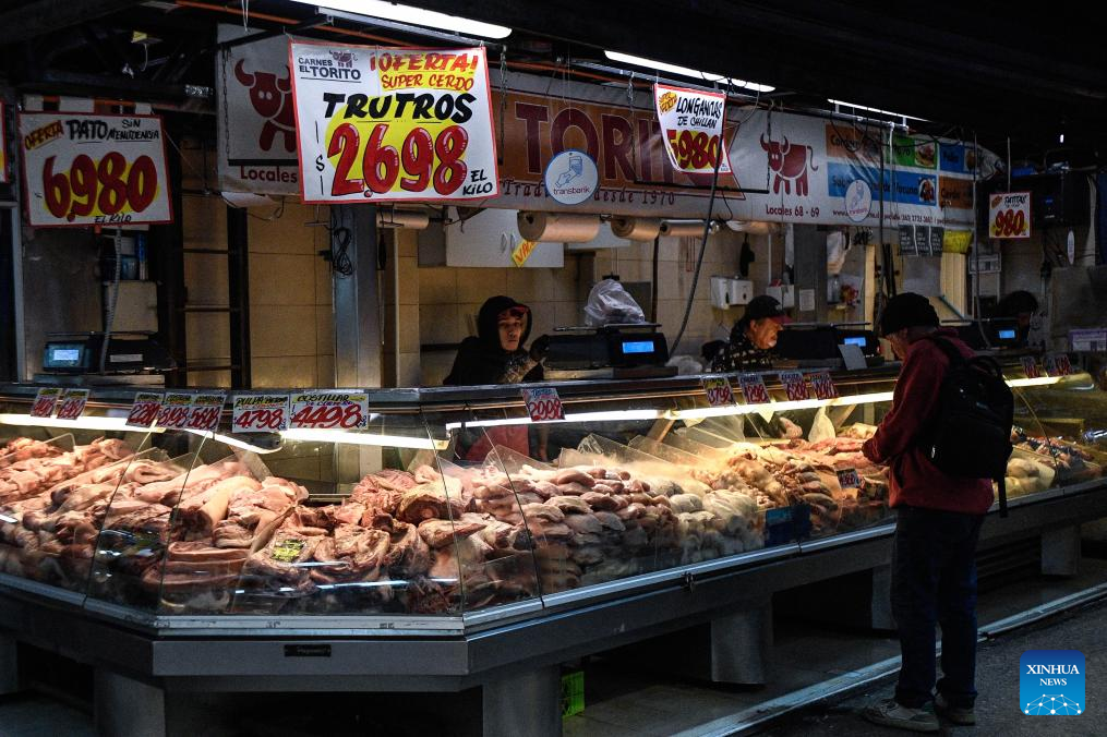 Una persona realiza compras en una carnicería en el mercado La Vega Central, en Santiago, capital de Chile, el 11 de junio de 2025. Analistas del mercado chileno elevaron a 2,2 por ciento su proyección de crecimiento de la economía del país sudamericano este año, tras estimar un 2 por ciento el mes anterior, informó el martes el Banco Central de Chile. (Xinhua/Jorge Villegas)